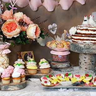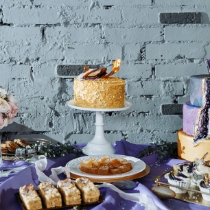 В то же время невероятно популярны торты в стиле омбре с переходом от глубоких тёмных тонов до более светлых или десерты с открытыми коржами на йогуртовой основе. Особо роскошно и изысканно выглядят торты в стиле рустик или бохо, украшенные яркими зелёными листьями и свежими цветами – их можно подобрать даже в тон свадебному букету невесты, её наряду или цветовой гамме торжества в целом. Необычным украшением сладкого стола станет французский крокембуш – торт конусовидной формы из небольших шариков тоффи, украшенных миндалём и шоколадом.