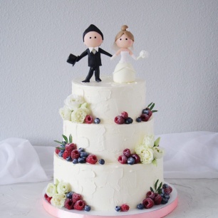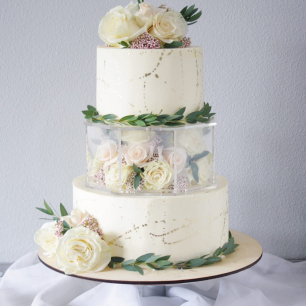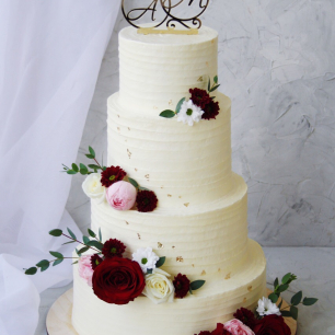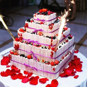 Идеальный вариант для свадьбы – торт из нескольких ярусов, каждый из которых может быть с разной начинкой, чтобы гости выбрали именно то, что им больше всего по вкусу. Если вы заказываете торт весом до 7 кг, ярусы можно располагать один на другой. Если же торт больше, то лучше всего дополнительно предусмотреть специальные подставки.