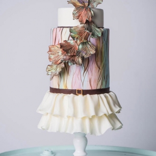 По-прежнему всё так же актуальным остаётся дизайн классического свадебного торта с такими декоративными элементами, как цветы и кружево из твёрдой засахаренной массы, прослойка кремами и сливками, отделка марципаном, экзотическими фруктами, лесными ягодами и шоколадом. Что касается цветовой гаммы, то торты могут быть абсолютного любого оттенка. Эффектно будет выглядеть свадебный десерт не только в белом, небесно-голубом или бледно-фисташковом цвете, но и аппетитного розового или приглушено-фиолетового оттенка, а также с отделкой съедобными разноцветными блёстками, с контрастными кружевными или геометричными узорами.