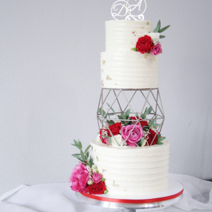 В качестве основы состава можно выбрать светлый или шоколадный бисквит, медово-ореховые коржи или воздушное безе, а изысканное решение для весенних и летних свадеб – торт-мороженое. Также можно выбирать и разнообразные прослойки, например, суфле, творожные массы, разнообразные кремы – сметанный, заварной, сливочный или белковый. Снаружи торт можно украшать не только глазурью – шоколадной или белой, но и желе, фруктами и ягодами.